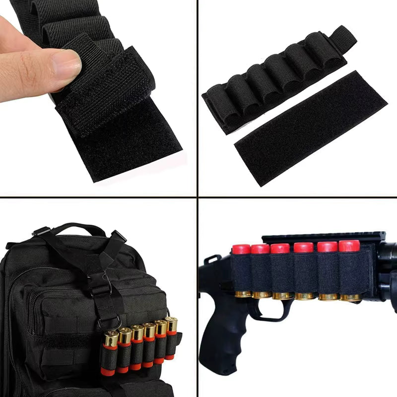 Assurez-vous que votre arme est déchargée avant toute manipulation. Fixez le porte-cartouches sur votre ceinture, gilet ou équipement compatible à l’aide du système d’attache prévu. Vérifiez que la fixation est bien serrée et stable avant utilisation. Insérez les cartouches dans le porte-cartouches, une par une, dans le sens facilitant leur extraction. Testez l’accès aux munitions afin de garantir une prise rapide et fluide. Conseils d’utilisation Contrôlez régulièrement la fixation pendant l’utilisation. Ne surchargez pas le porte-cartouches au-delà de sa capacité prévue. Nettoyez-le si nécessaire pour assurer un bon maintien des cartouches.